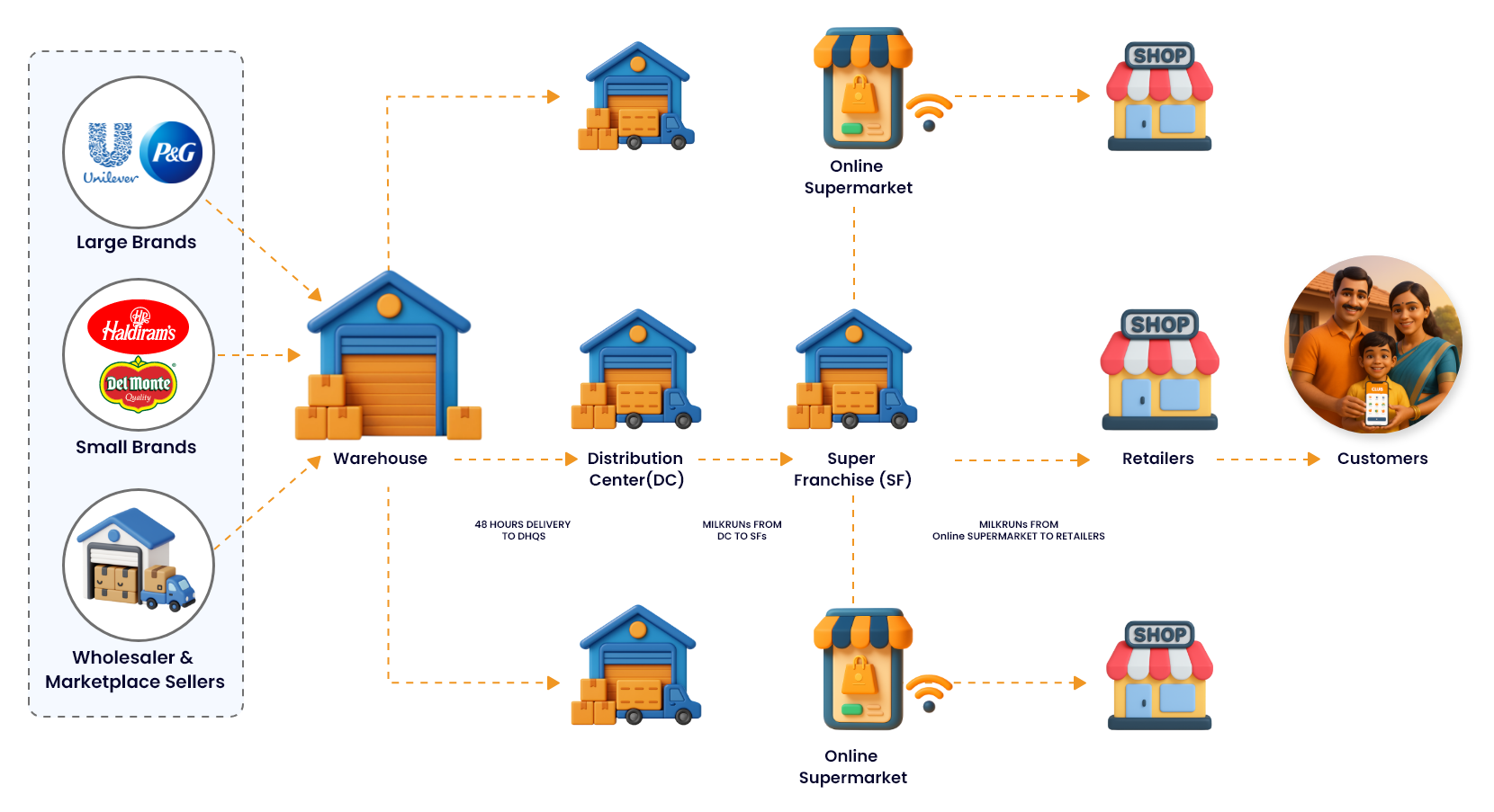 To become India's largest retail platform by empowering small-town India — reaching 70% of the population through technology, trust, & transformation. We envision a future where every small-town retailer is not just surviving, but thriving — running smarter & better.